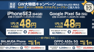 ソフトバンクから発売されているBALMUDAPhoneが13万円以上の値引きで登場しています。 5月に開催されるキャンペーンです。 来店者限定のキャンペーンとなりますので、ネットだけで完結して購入することはできません。 週...